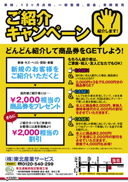 東北産業サービスではお得なキャンペーンをおこなっております。ぜひご来社ください。