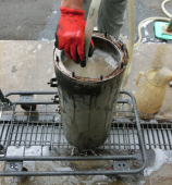 特殊な専用洗浄剤にて、巡回させて洗浄を行います。
